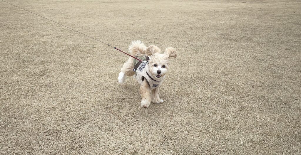 こんな感じで、飼い主が追いつけないほどの速さで、いつも公園を走り回っています。
