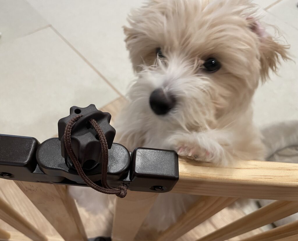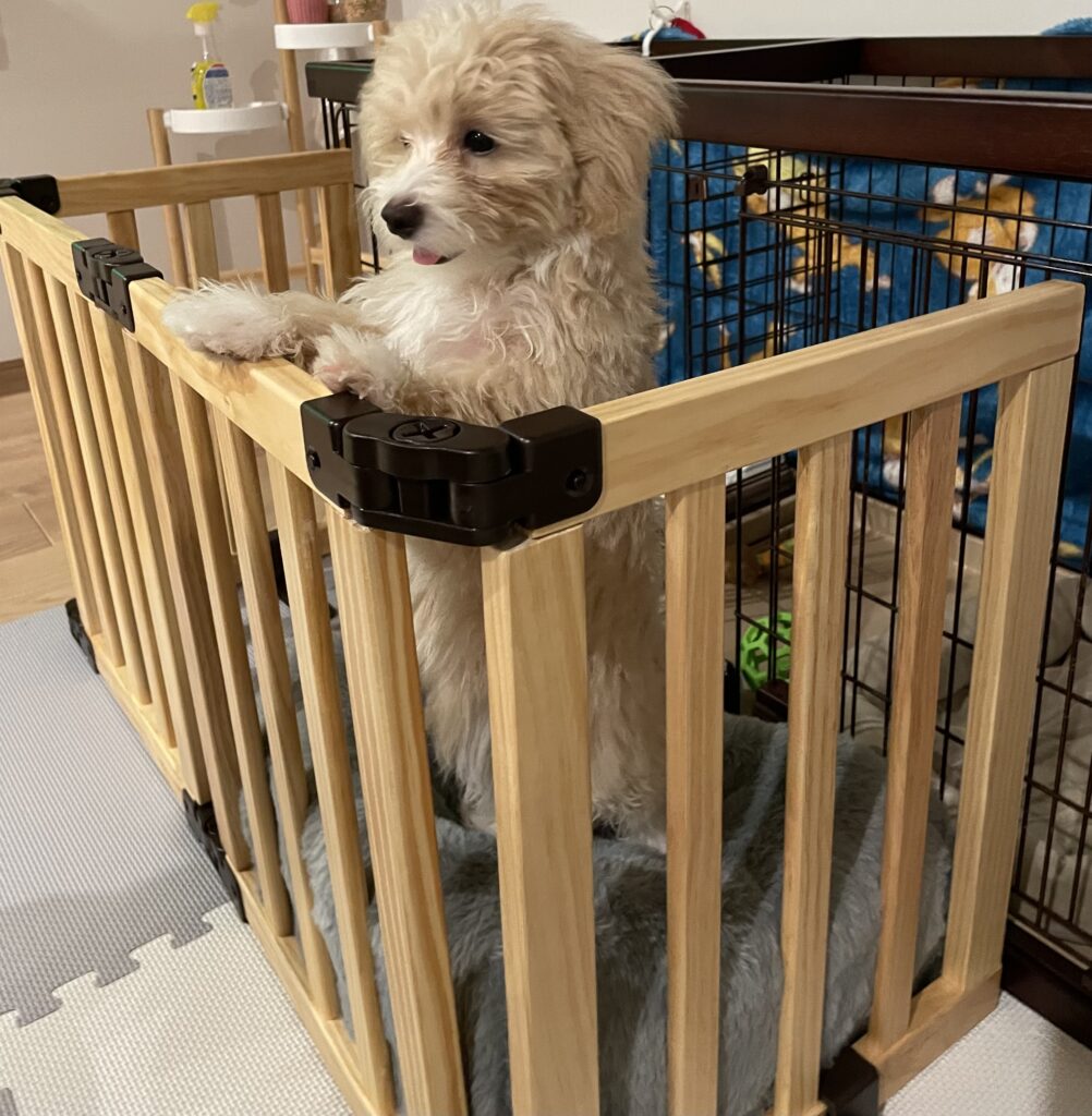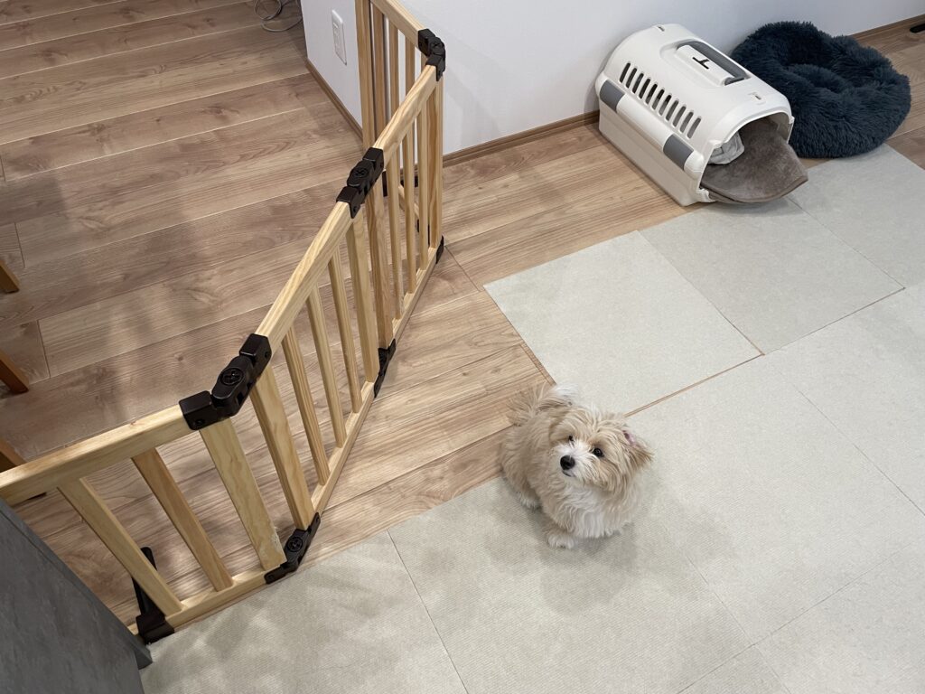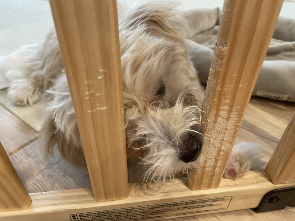 しかし、きなこの力が強くなってきて今にも破られそうでしたし、長時間のお留守番のときに狭くてかわいそうに思うようにもなりました。