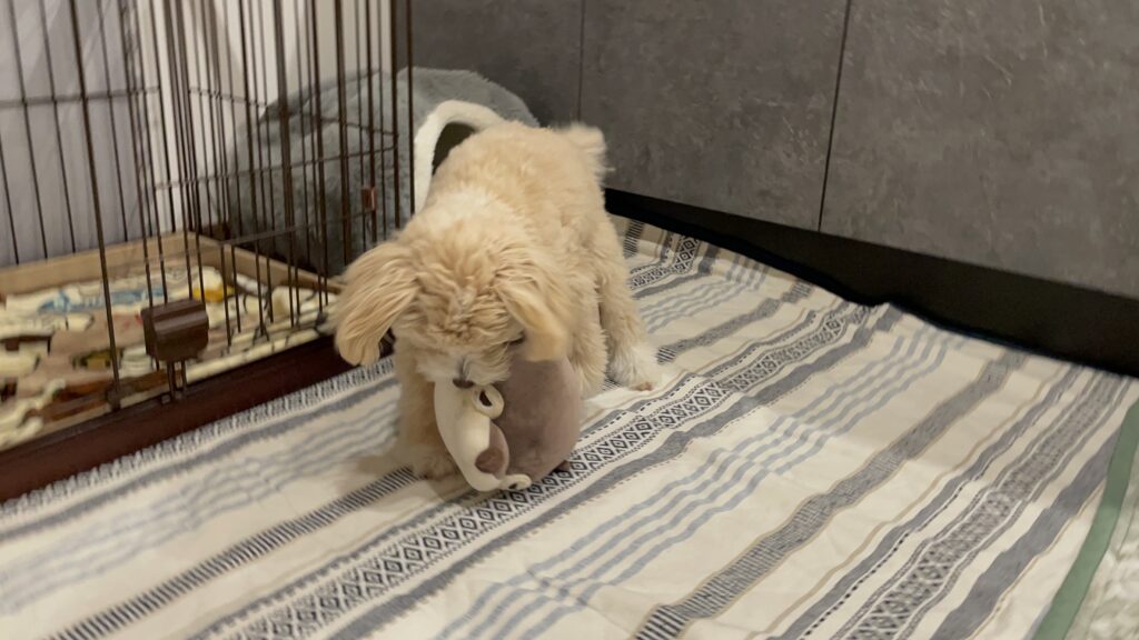 男の子を飼っている人なら分かるかもしれませんが、ぬいぐるみ相手には、一度びっくりするくらいの興奮状態にもなりました。