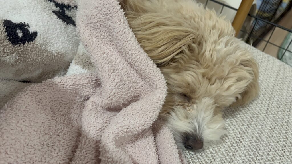 着いたときには、店員さんにも笑われるくらい、ブルブル震えていましたが、慣れないところで3時間も良い子にしていられたそうです。