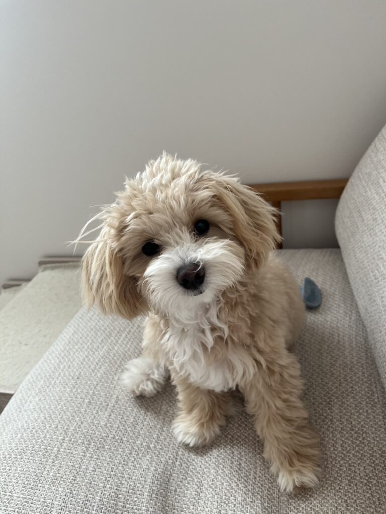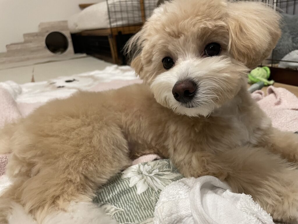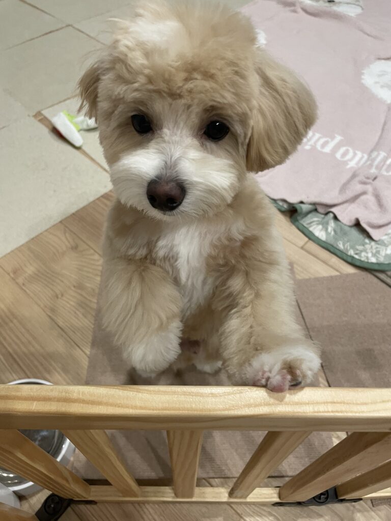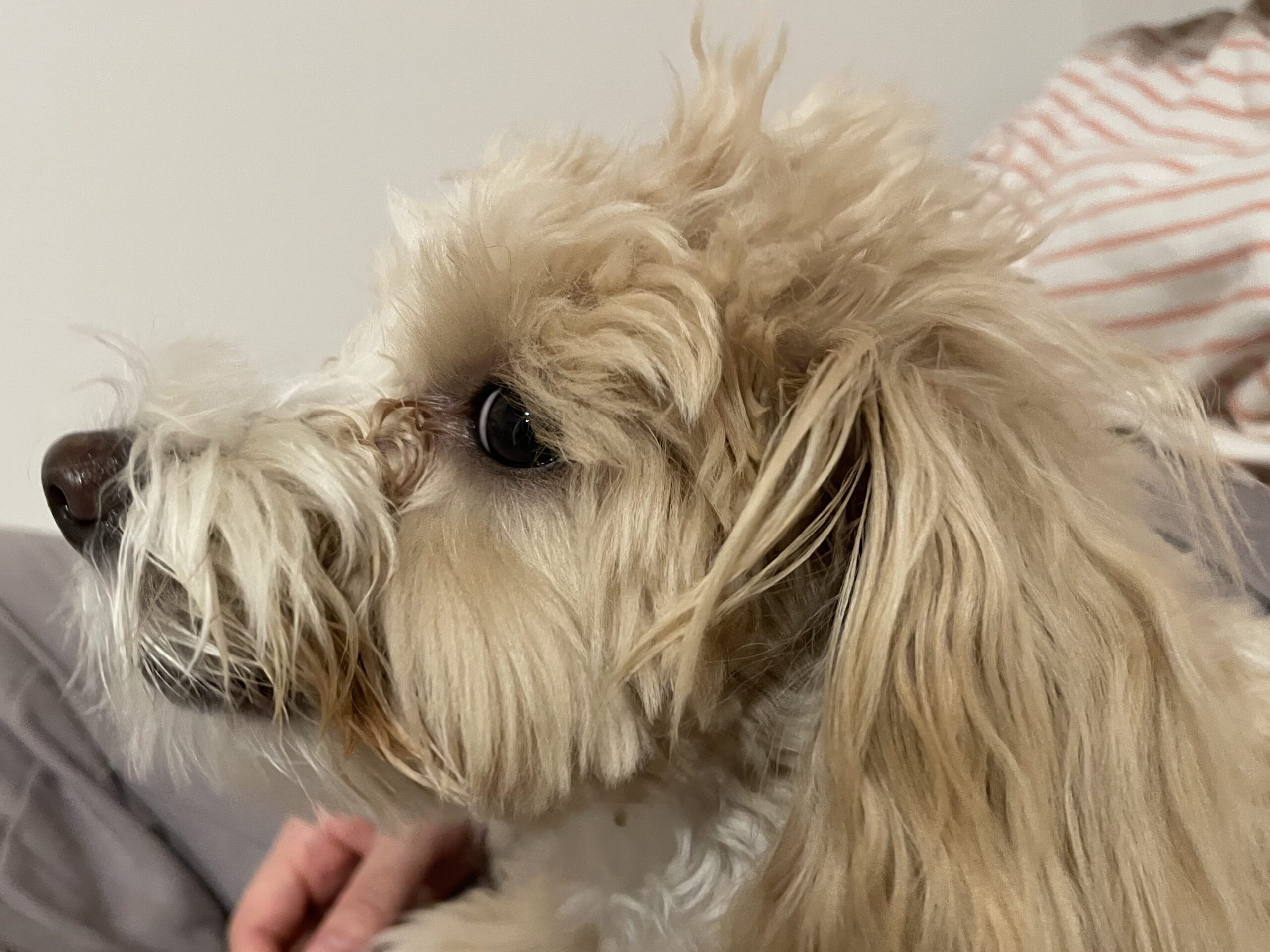 トリミング前は、いつもベビースターみたいなチリチリな毛をしていて、髪はモヒカンのようになっています笑