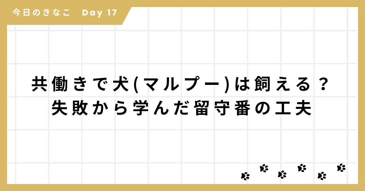 我が家は共働きですが、マルプーのきなこを飼っています。