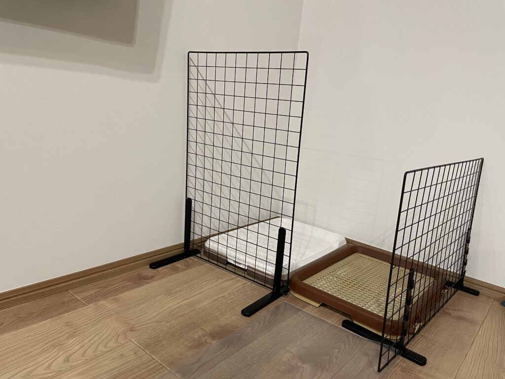 試行錯誤の結果、いまはトイレを2つ並べて端っこに置いています。