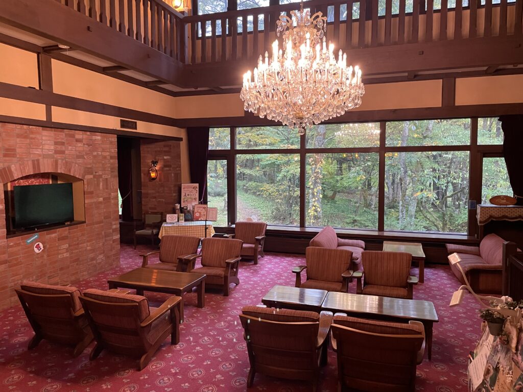 ホテルのロビー。大きくて瀟洒なシャンデリアが印象的。