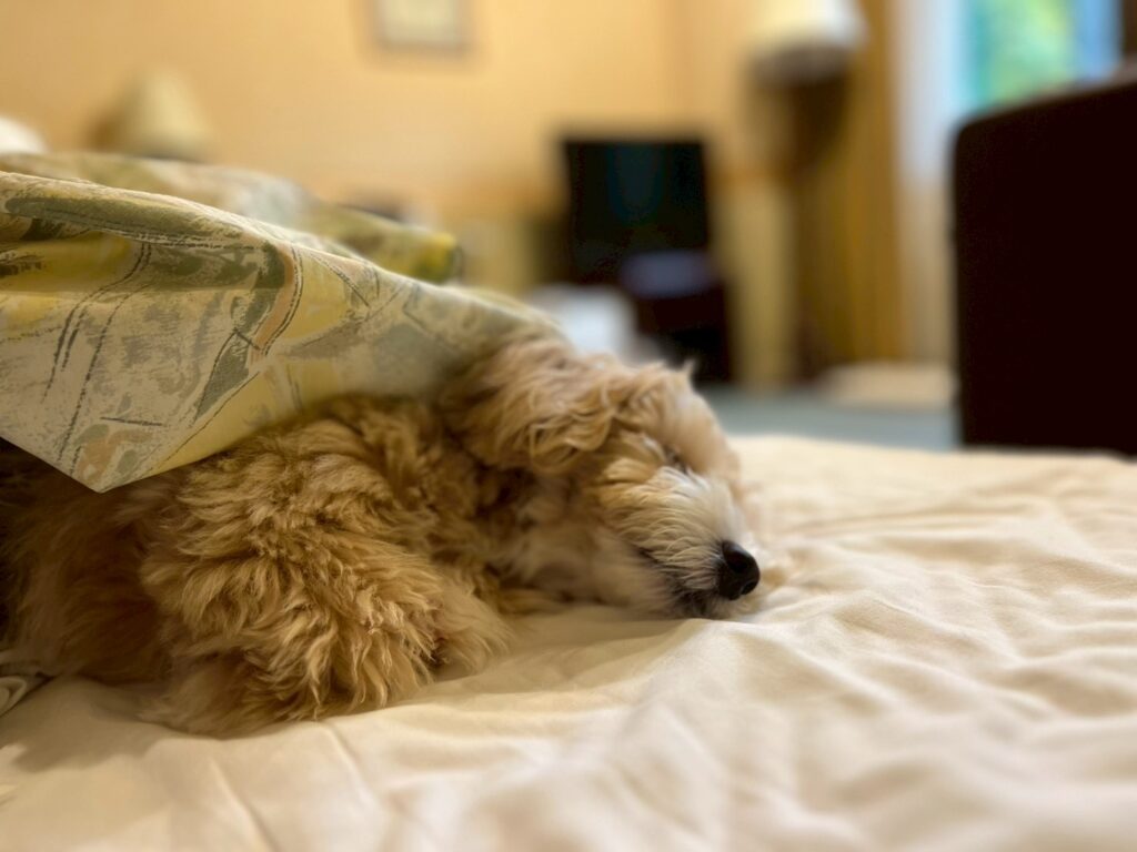 慣れているベッドも持っていきましたが、きなこはママのベッドで一緒に寝ていました。